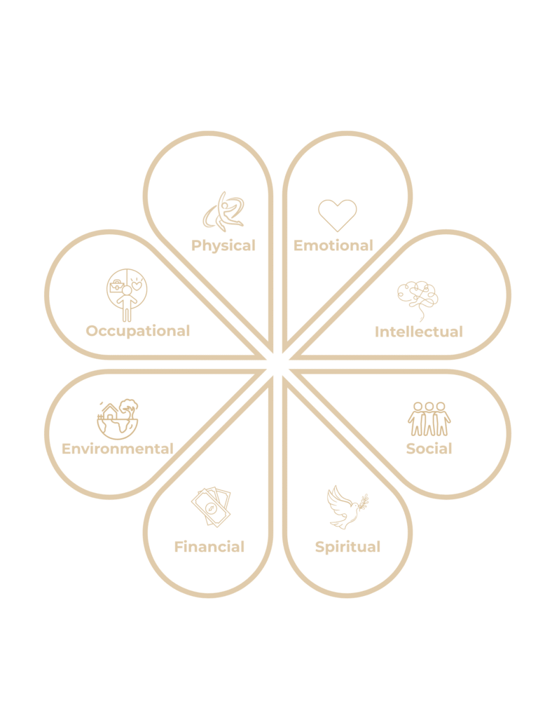 Wellbeing is interconnected across eight dimensions.Seeing the full picture comes before choosing support.